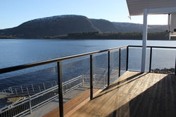 Rorbuene ligger idyllisk plassert innerst i Ellingsøyfjorden med panoramablikk over fjell og fjord.
